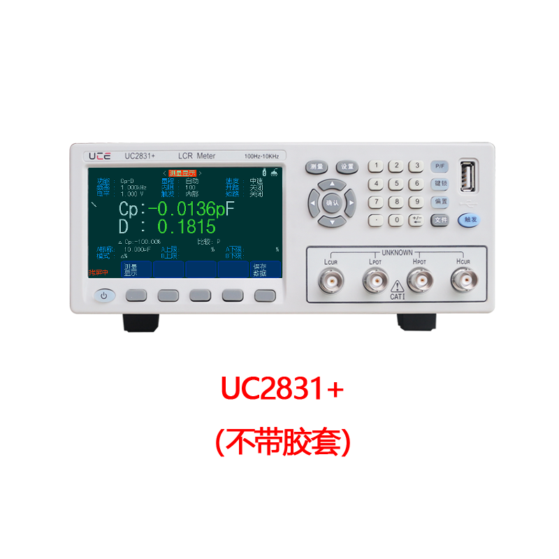 UC2831+系列是一款采用新技术平台高性能低价格的元器件测试仪。其采用当前流行的4.3寸真彩TFT显示器,使用户能更直观,更舒服的读出测试结果。强大的功能和简单的操作,50Hz-200KHz多频率点以及0.1%的精度可满足生产线质量保证、进货检验及实验室测量要求。